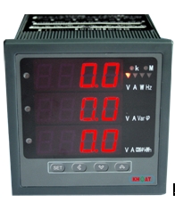 KHMPM/S電力儀表采用大規模集成電路進行模擬/數字轉換,實現模擬量的數字化顯示。具有測量準度高,可靠性好,直觀、抗干擾能力強的特點。能高精度地測量三相電壓、三相電流、有功功率、無功功率、視在功率、頻率、功率因數、有功電能等電力參數。具有很強的擴展輔助功能,如用于監視開關狀態的四路開關量輸入、控制開關動作的四路繼電器報警輸出、也可用于開關量輸出控制、兩路4-20mA模擬量變送輸出以及一個RS485通訊接口。儀表面板提供四個編程按鍵,用戶可現場方便地實現顯示切換、儀表參數編程設置。多功能電力儀表廣泛用于電站、電氣開關柜等各行業供配電場所、能源管理、自動化以及智能化網絡監控系統等。