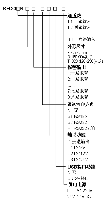 如:有一臺(tái)表的型號(hào)是:KH204F-2-U;
